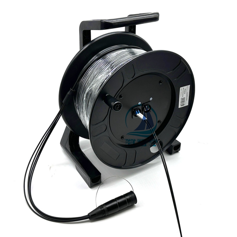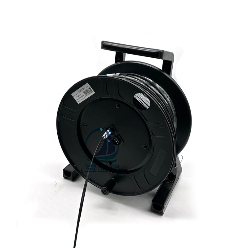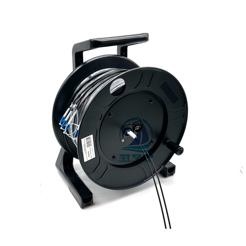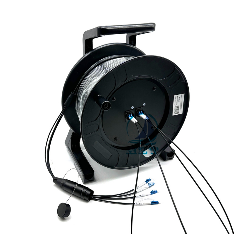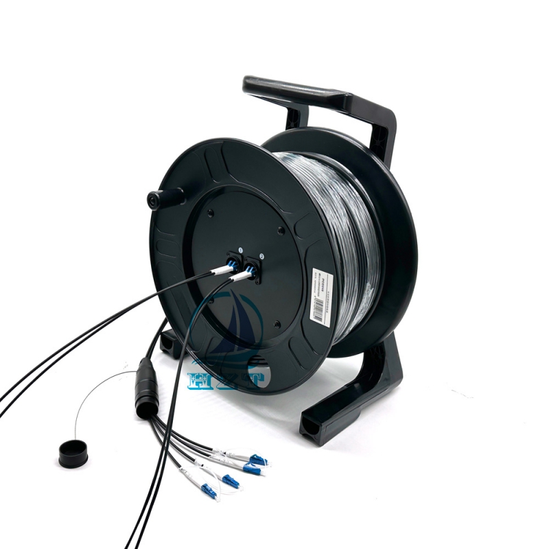 Our innovative 4-core tactical armored fiber optic cable is engineered for rapid, reliable, and robust deployment in demanding environments. This pre-terminated cable solution features a unique design where one end of the LC connectors is permanently fixed and integrated onto the storage reel. This eliminates the need for handling the entire cable length during connection, significantly enhancing operational efficiency and protecting the critical fiber interfaces from damage. Simply deploy the free end and connect it using a standard, short LC jumper cable.